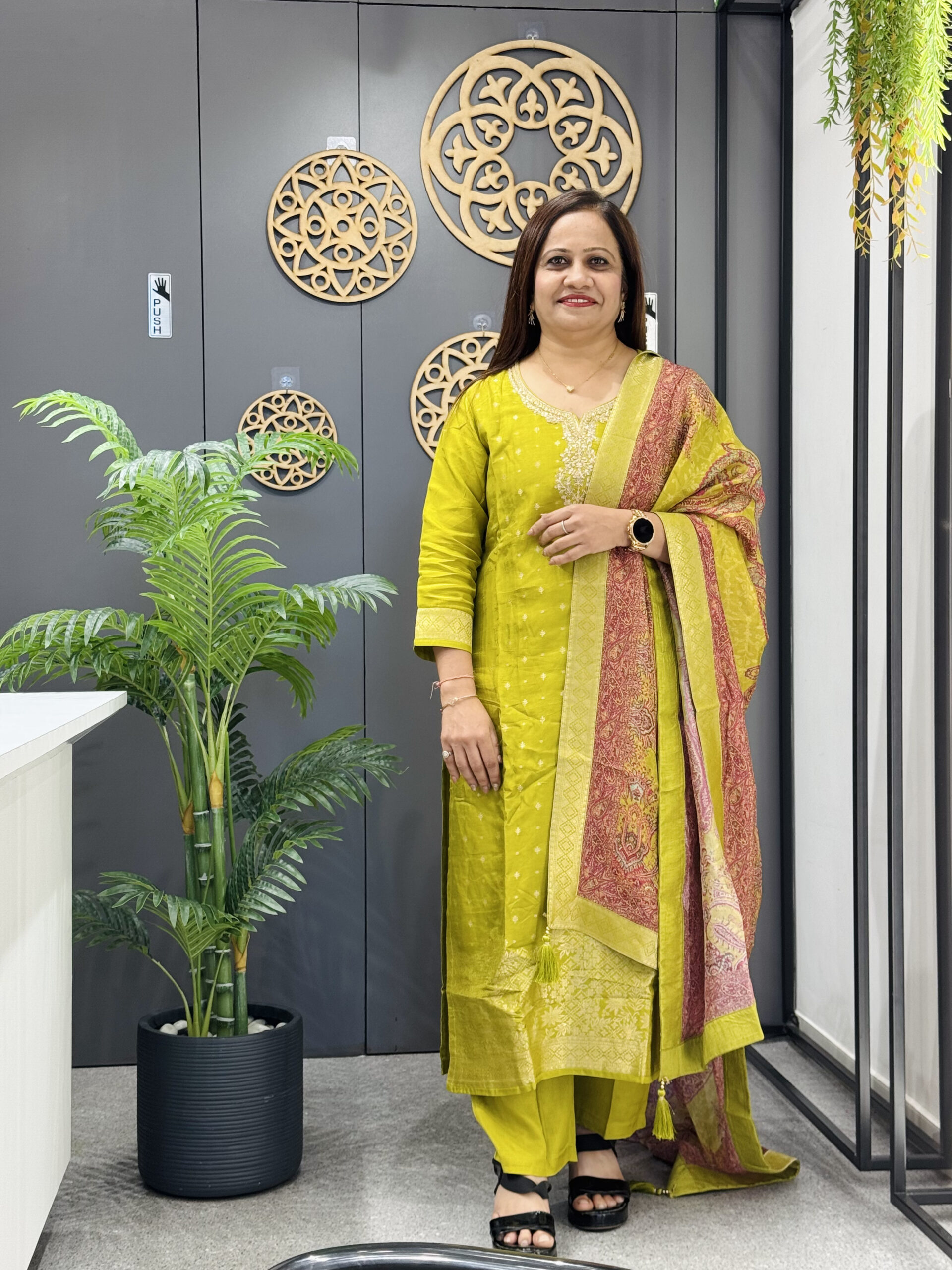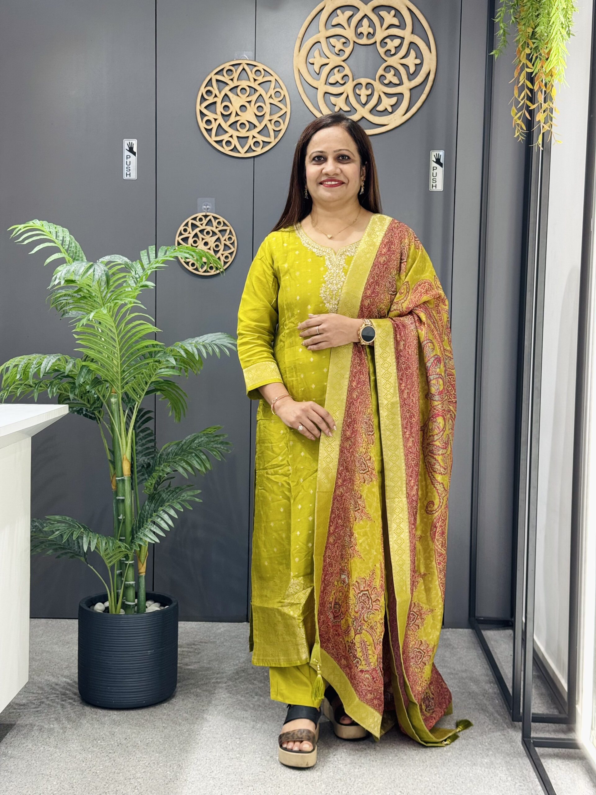 This exquisite handwoven fabric blends the softness of cotton with the subtle sheen of silk, delivering a lightweight and breathable textile perfect for any occasion.