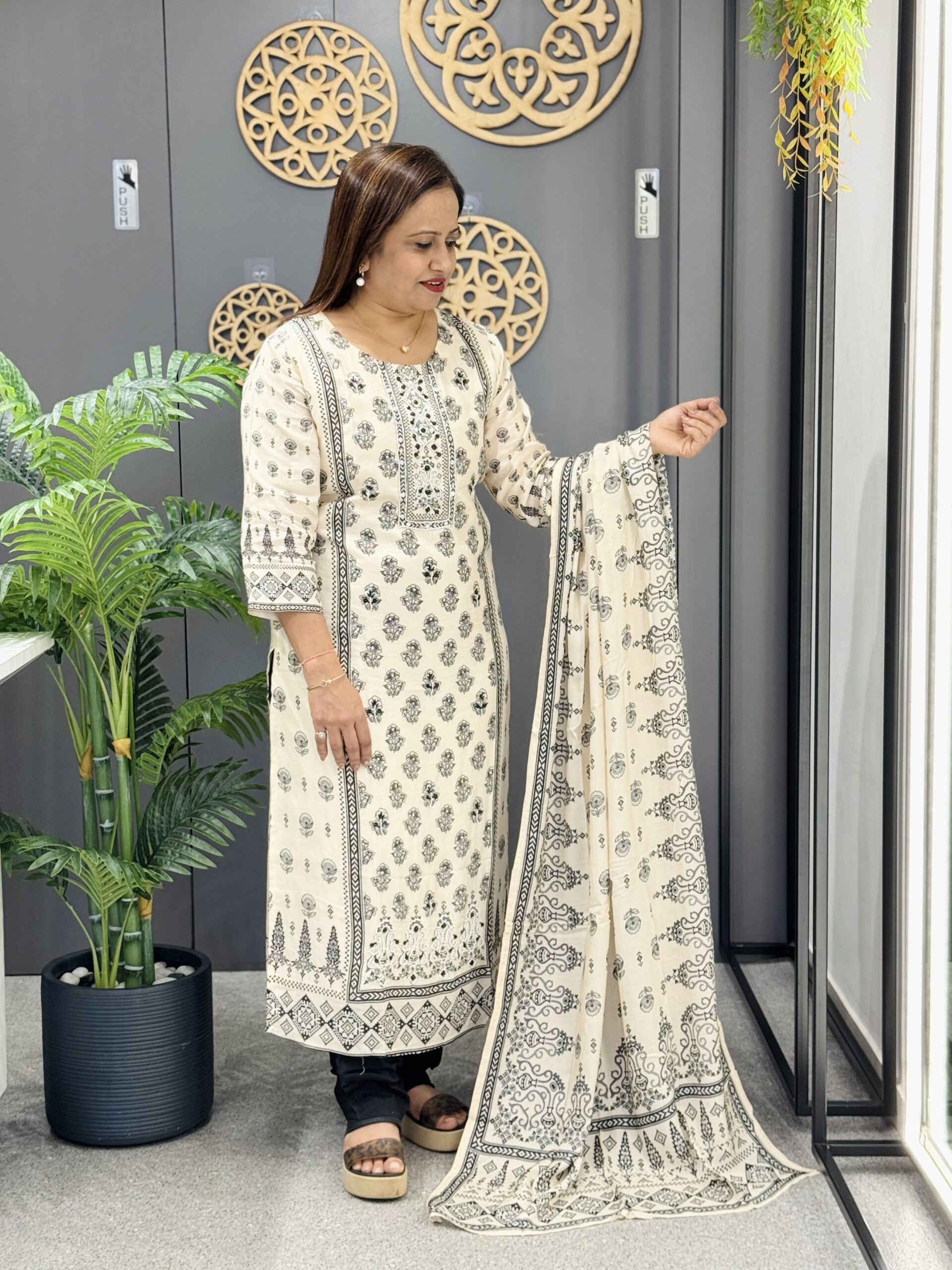 Thoughtfully designed to highlight simplicity and sophistication, this onepiece reflects Shree Bhakti’s commitment to quality, comfort, and refined style a perfect blend of tradition and modern fashion.