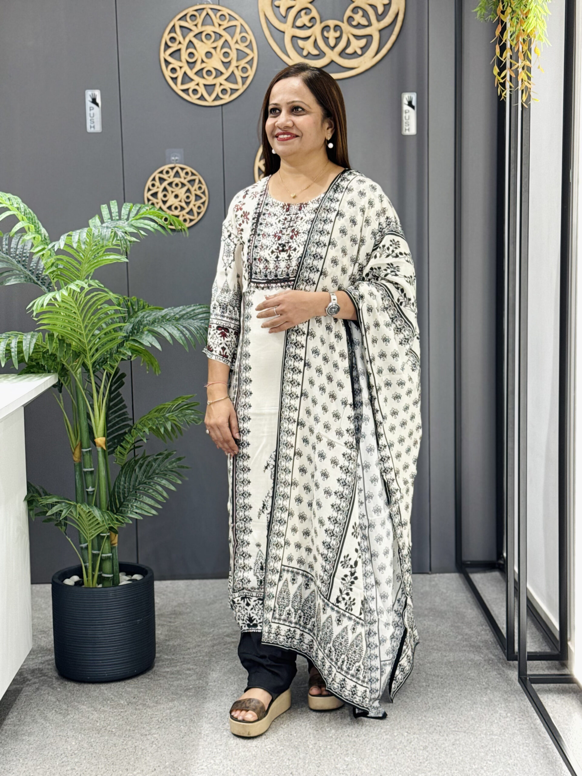 Indulge in soft sophistication with this elegant Muslin Fabric Dress from Shree Bhakti. Made from premium-quality muslin, this dress is incredibly lightweight, airy, and gentle on the skin perfect for all-day comfort.